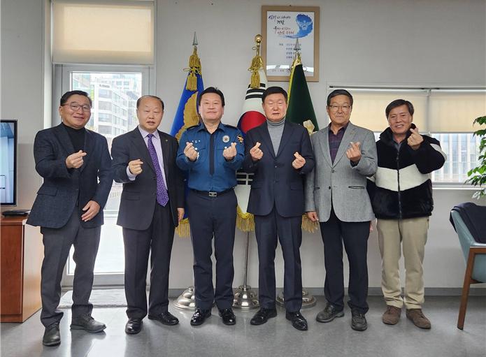 왼쪽부터 심창섭 원주종회 총무, 심상억 대종회 총무이사, 심한철 신임 서장, 심상인 이경공파종회장, 심상현 도총제공파종회장, 심상천 대종회 이사(예산) 신임 경기남부경찰청 분당경찰서장에 심…